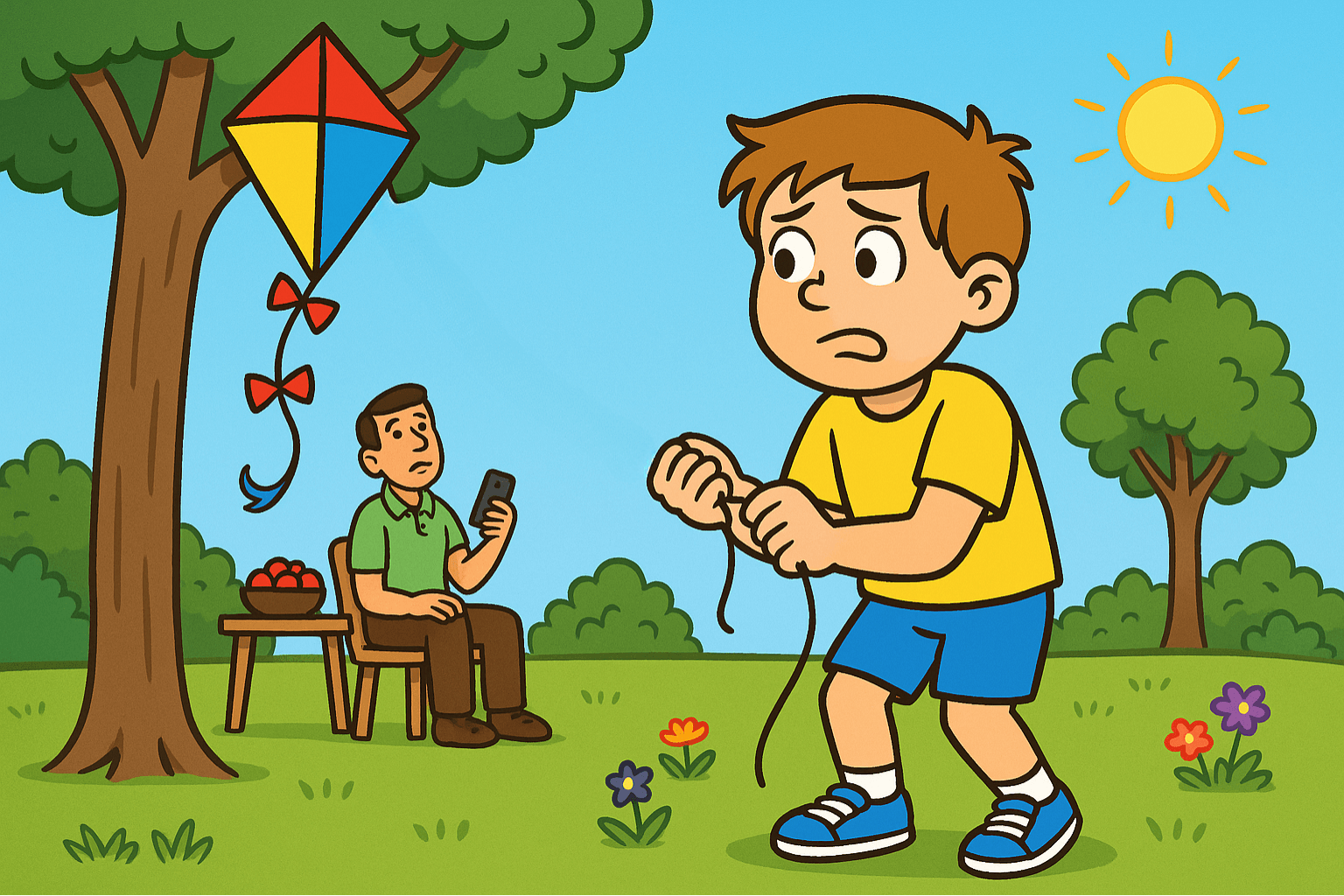 5. Who is holding the kite now? - The