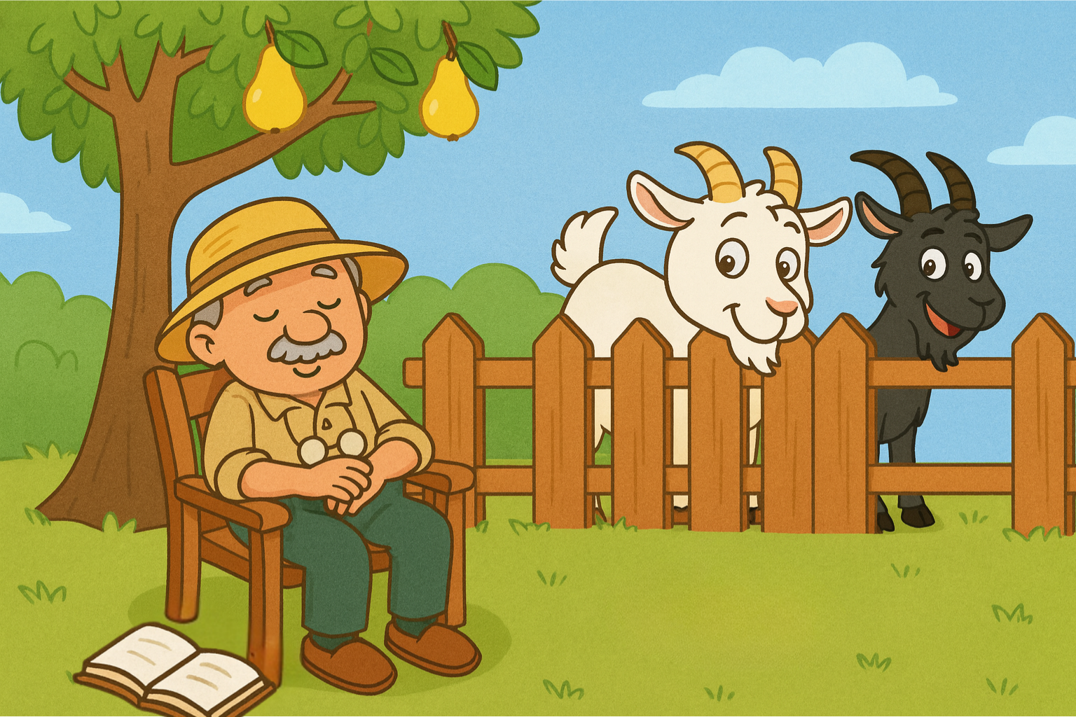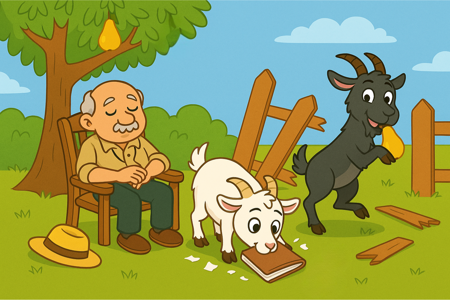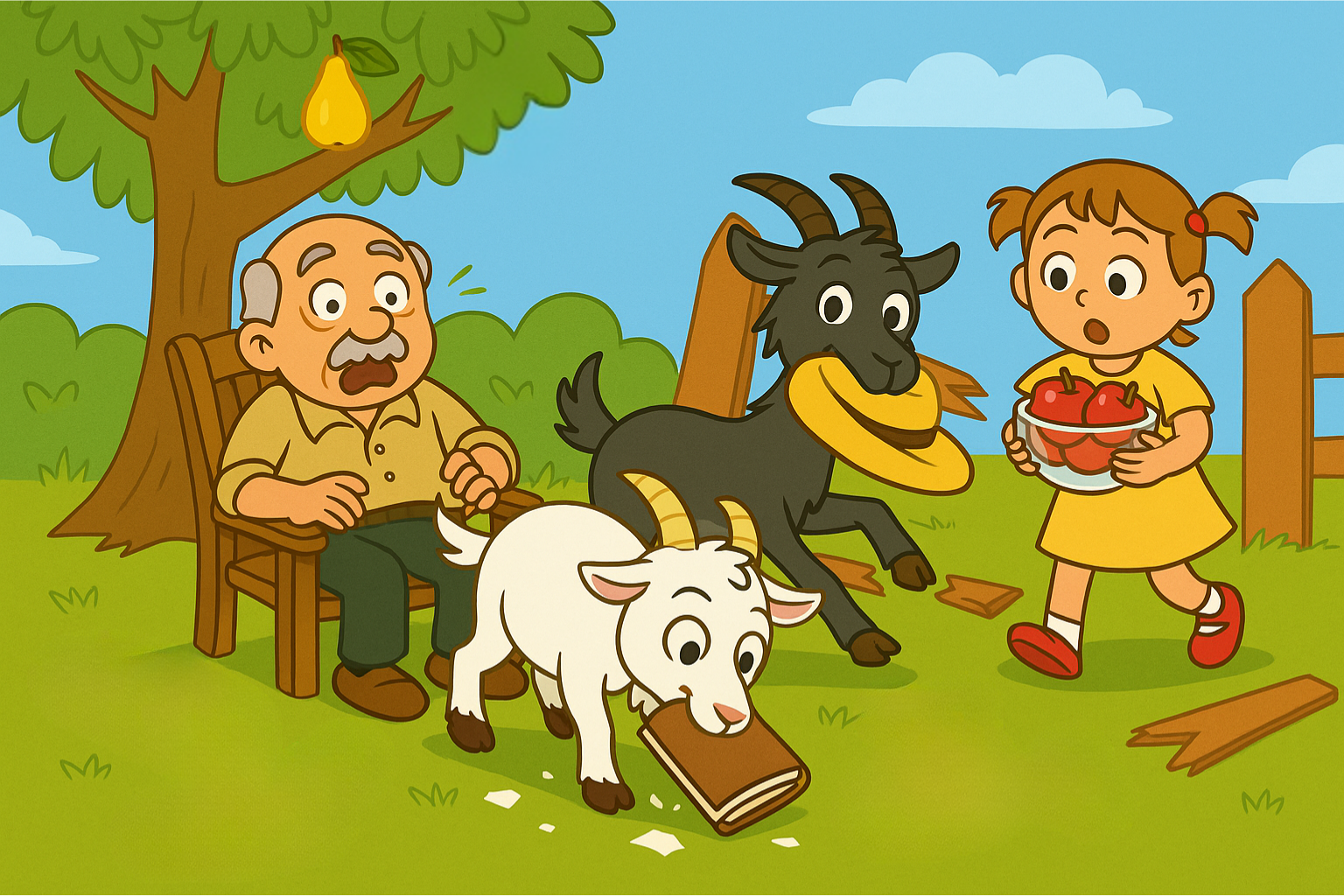 5. What is the black goat holding in its mouth? - A