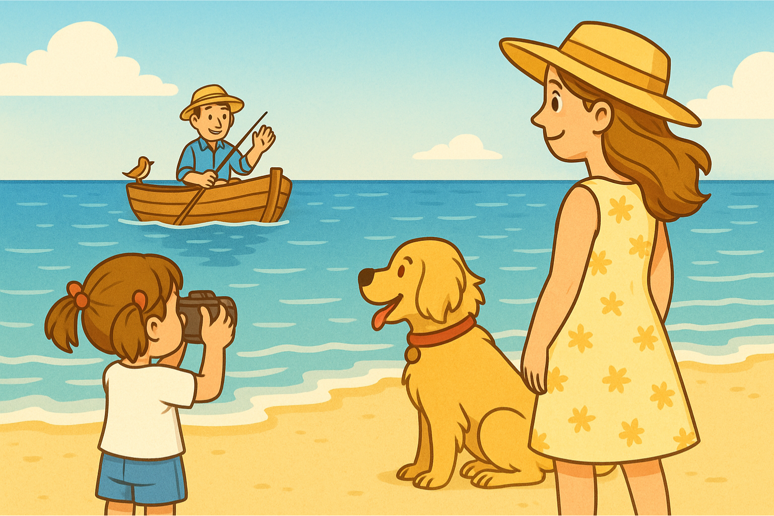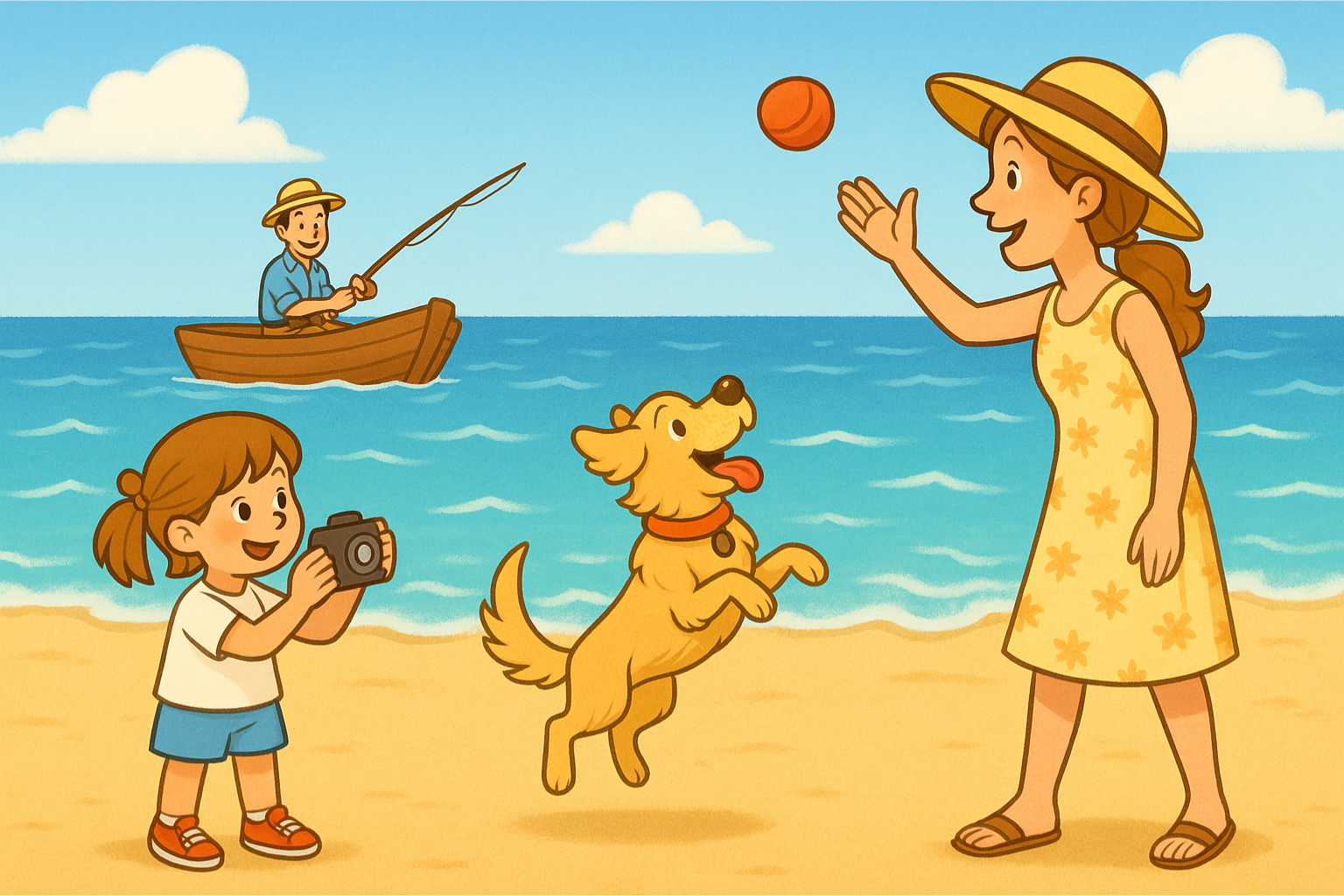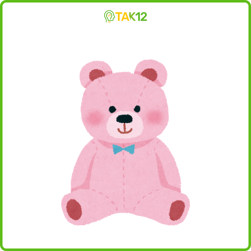 May's favourite toy is a doll. The doll has got long yellow hair and big green . It wears a pink dress and black . It has got a blue on its head. May likes playing with her doll in the behind her house. She talks to her doll and sings a song. May puts the doll on her bed at . She likes sleeping with her favourite toy.