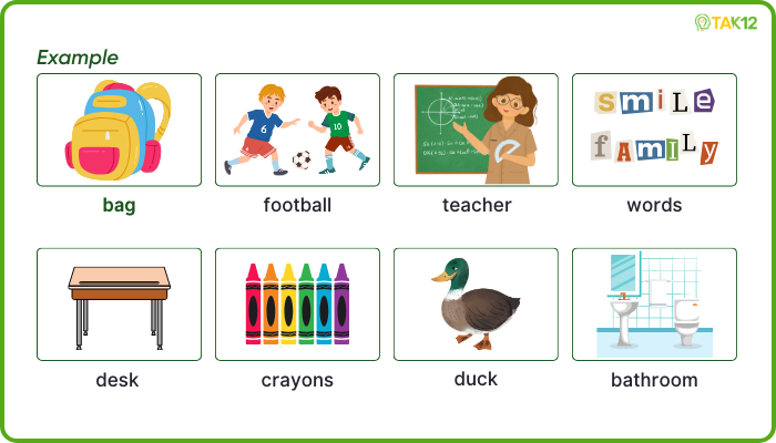I go to school every day. I take my bag to school. I put my books, pencil, and in it. My is very nice. I sit at a small in my classroom. I write with my pencil in my book. I like learning new . I have got many friends at school. We run, jump, and play . I am happy at school.