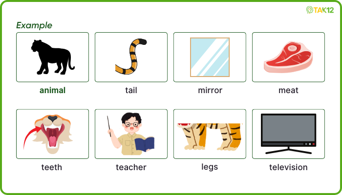 A tiger is a big animal with orange and black hair. It has got four and a long at the end of its body. It has got a big mouth and white . Tigers can run and jump. Tigers eat from small or big animals. Children can see tigers at the zoo, or learn about them in books and on .