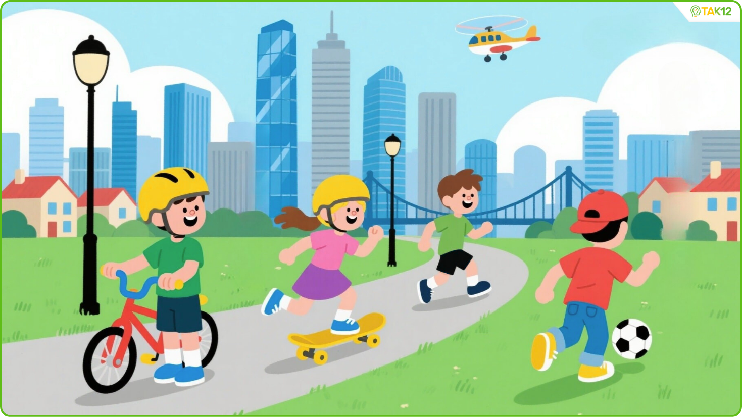 4. One boy is riding a bike.