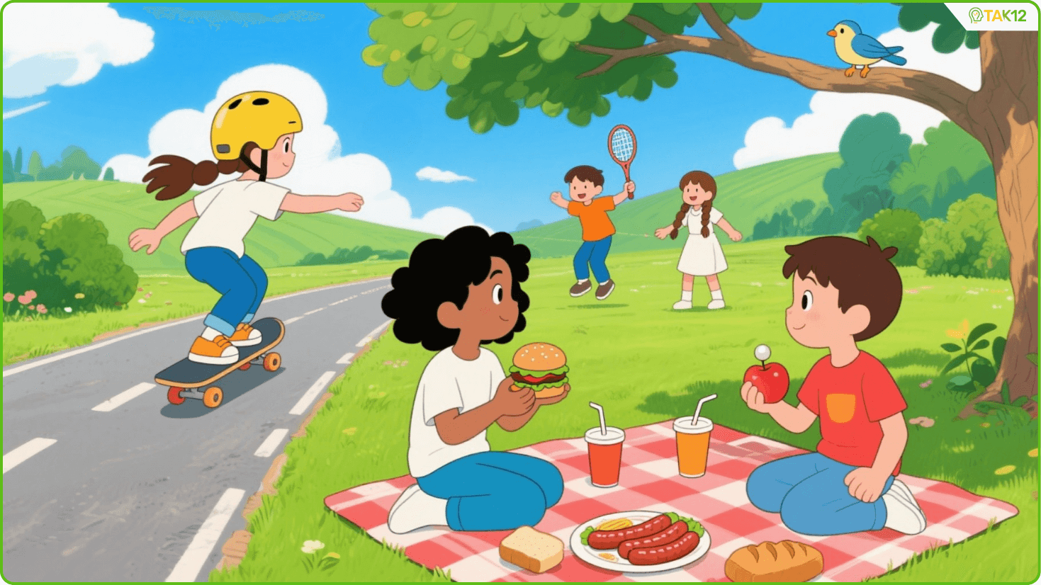 There is a playground near my house. Children can play and football there. They can ride their in the playground too. There is a big tree in the playground. Children can sit and read under the tree. They also play the and sing songs. Mums and dads can go there. They can look at the children and take photos with a . The playground is fun.