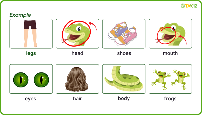 There are many snakes in the world. A snake has got no legs and no arms. It can't run. It can hold things with its . The snake's is small but its is big. Snakes cannot close their . Some snakes live in water and some live on land. A lot of snakes sleep during the day and find food at night. They like eating mice and .