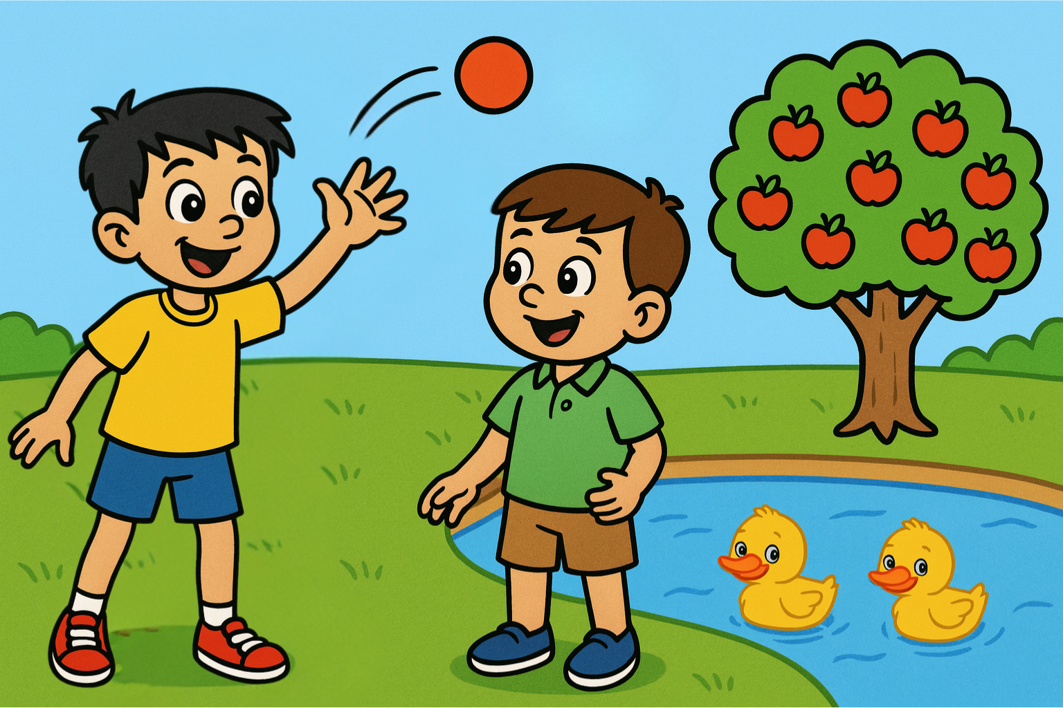 1. What is the boy with black hair doing? - a ball