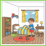 Look at the picture. Listen and draw lines. There is one example.