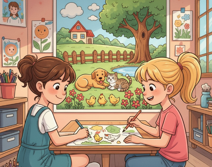 Listen and color. You can listen to the audio twice. There is one example.