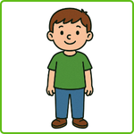 Thay cho "draw lines", em hãy nghe và kéo từng ô tên vào ô trống trên hình người được nói tới.