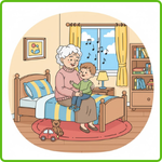 Thay cho "draw lines", em hãy nghe và kéo từng ô tên vào ô trống trên hình người được nói tới.