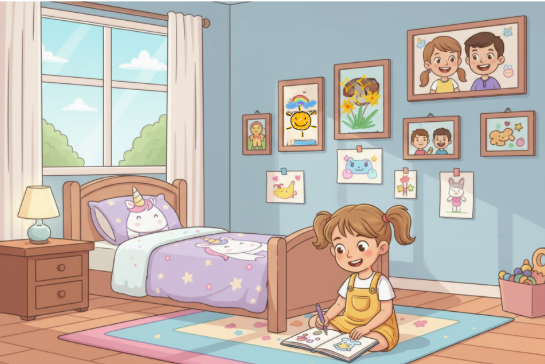 Nghe và kéo từng tên màu vào ô trống trên hình tương ứng.