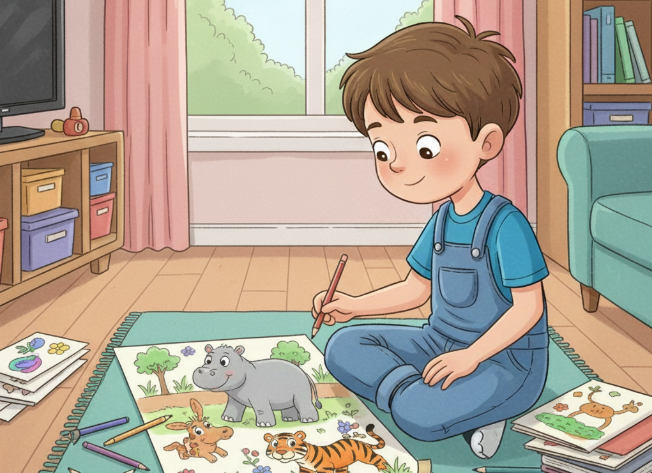 Nghe và kéo từng tên màu vào ô trống trên hình tương ứng.