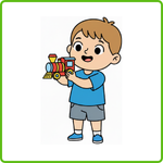 Thay cho "draw lines", em hãy nghe và kéo từng ô tên vào ô trống trên hình người được nói tới.