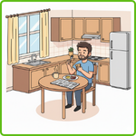 Look at the picture. Listen and write a name or a number. There are two examples.