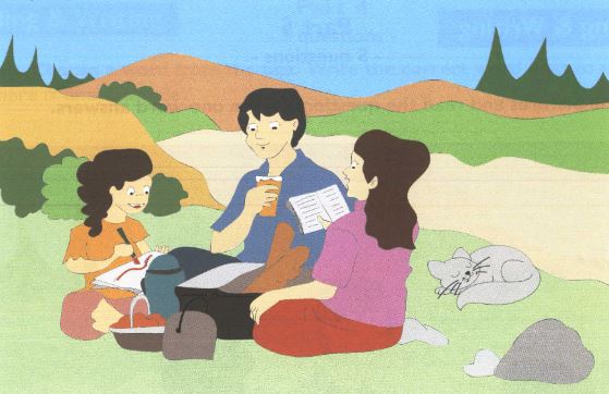 2. What's the woman doing? - a book