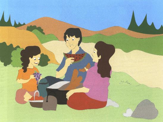 I am green, yellow or red. I come from a tree. Lots of like eating me. I am a but I'm not an orange or a grape! People can get me from in the street. They put me in a there. At home, you can put me in a room Iike the , for example. What am I? I am an apple.