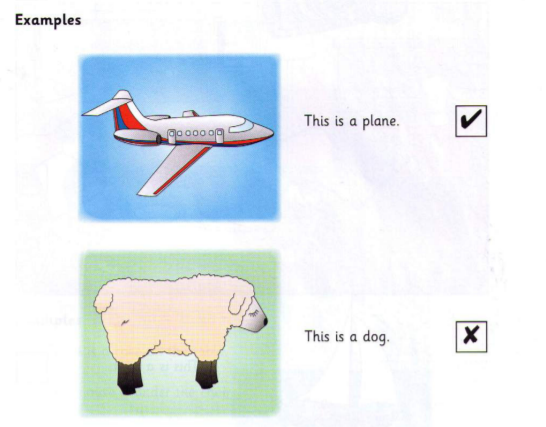 Look and read. Choose True or False. There are two examples.