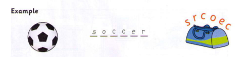 Look at the pictures. Look at the letters. Write the words.