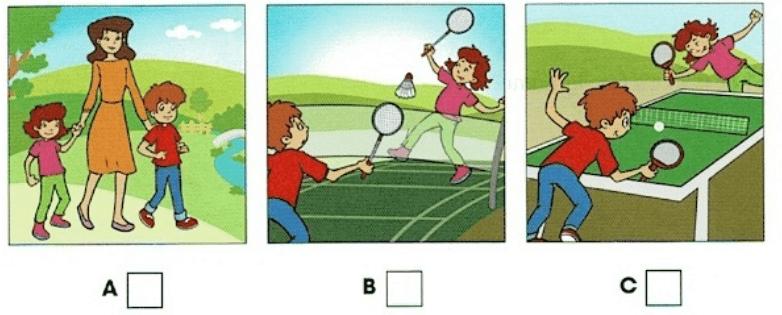 Look at the picture. Listen and draw lines. There is one example.