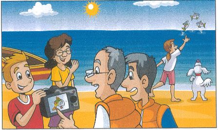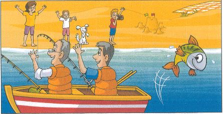 5. Who is pointing at the fish? - The