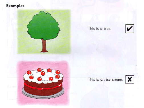 Look and read. Choose Yes or No. There are two examples.