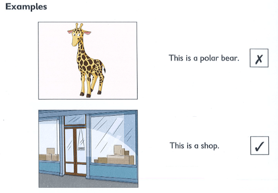 Look and read. Choose Yes or No. There are two examples.