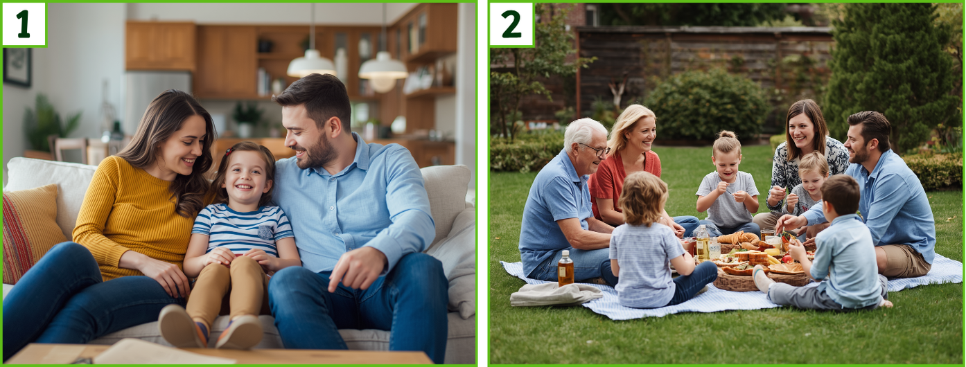 Look at the two photographs. They show different types of family. Compare the photographs and say what it might feel like to grow up in each of these families.