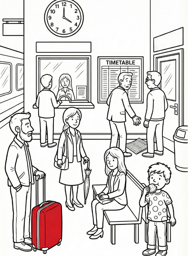 1. Color the umbrella of the woman who is standing -