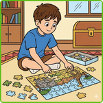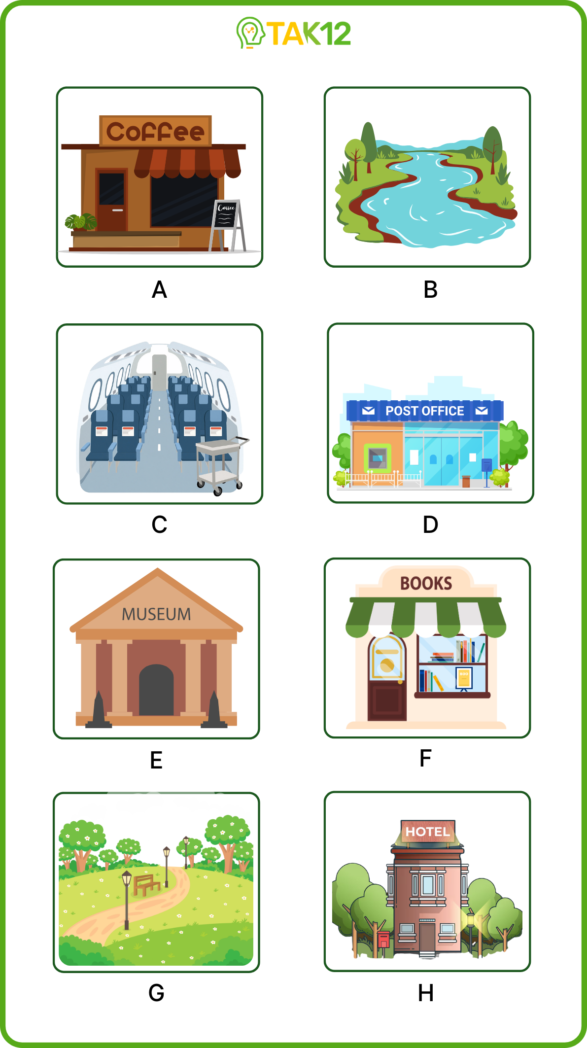 1. Colour the pocket on the shirt of the man who is sitting on the seat -