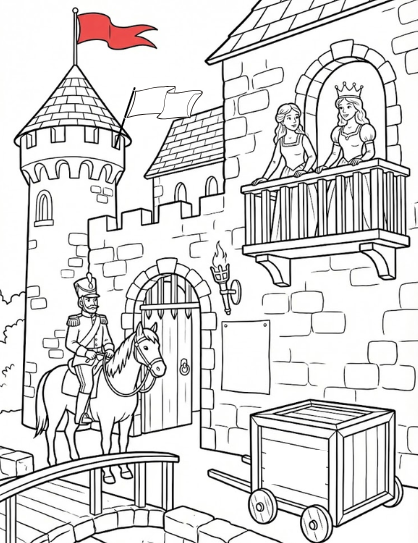 3. Colour the crown of the woman who is standing on the right on the balcony -