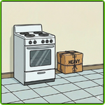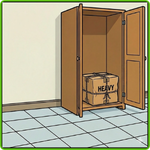 Where should the man put the heavy box?