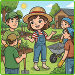 4. Write "" on the box of vegetables near the path