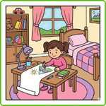 What is Helen doing in her room?