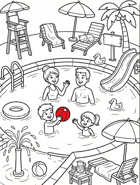 2. Colour the swimsuit of the woman who is talking in the pool -