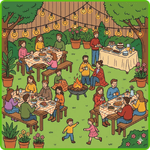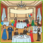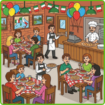 1. Colour the cat that is sleeping on the chair behind the people -