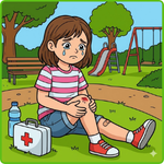 Example: Colour the ball that the children are playing with - red