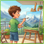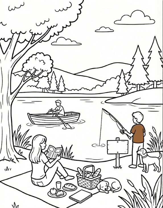 2. Colour the boat on the lake that the man is sailing -