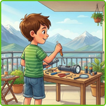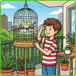 What is George doing on the balcony?