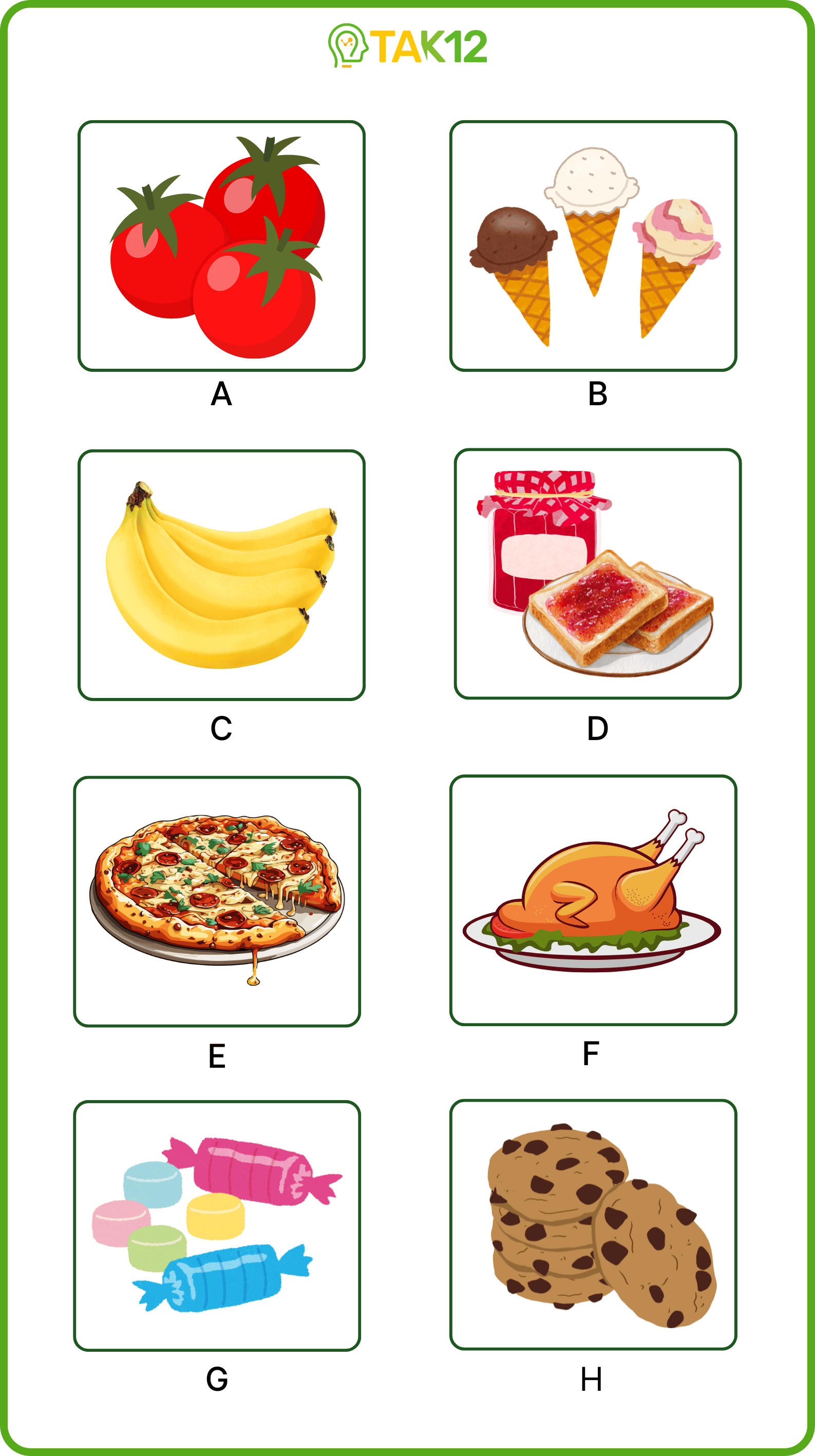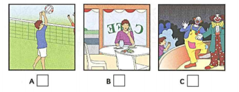 Listen and write a letter in each box. There is one example.