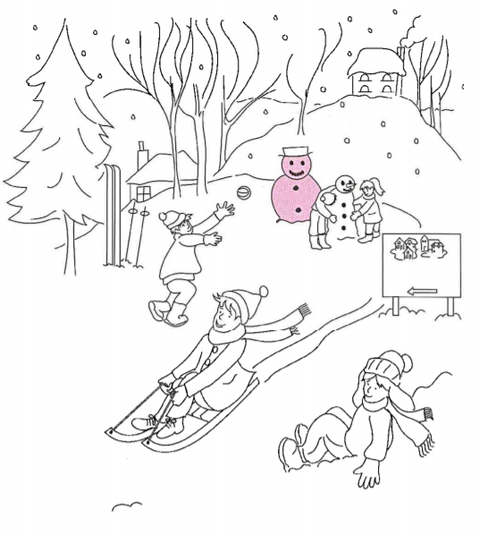 5. Colour the coat of the boy on sledge - .