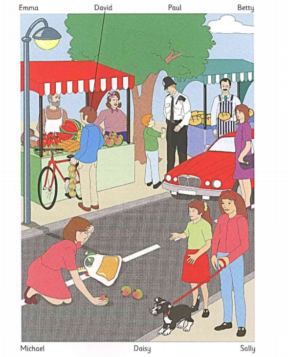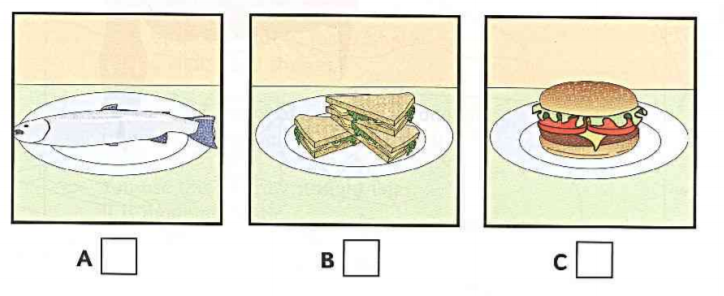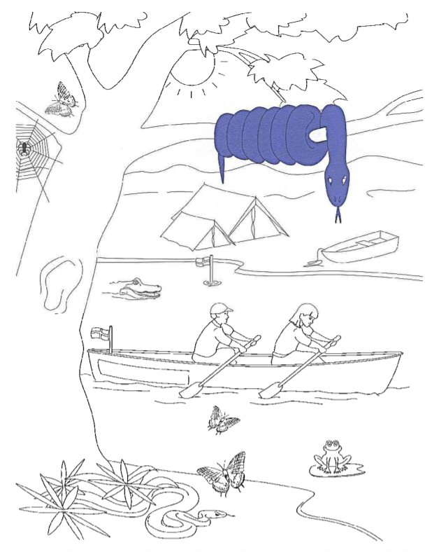 2. Draw one fish behind the frog, at the front of the picture, and colour fish - .