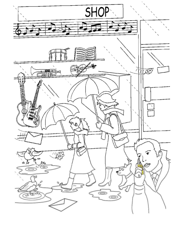 4 Colour the girl's umbrella - .