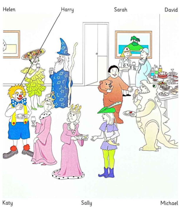 Example: Harry - the man in the big shoes and looks like a clown.