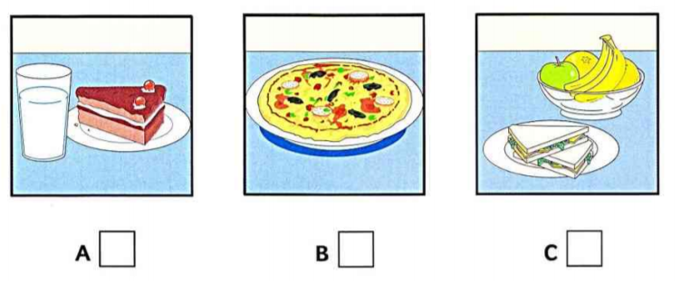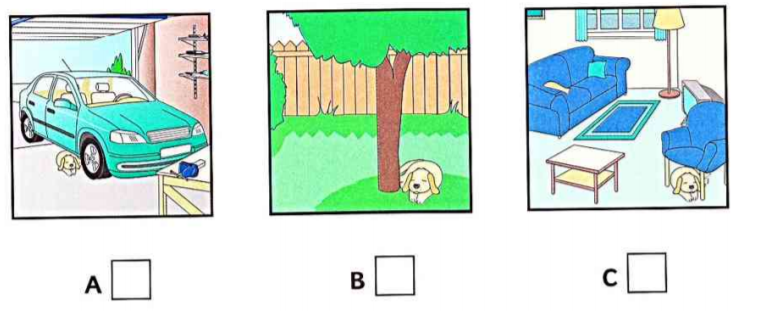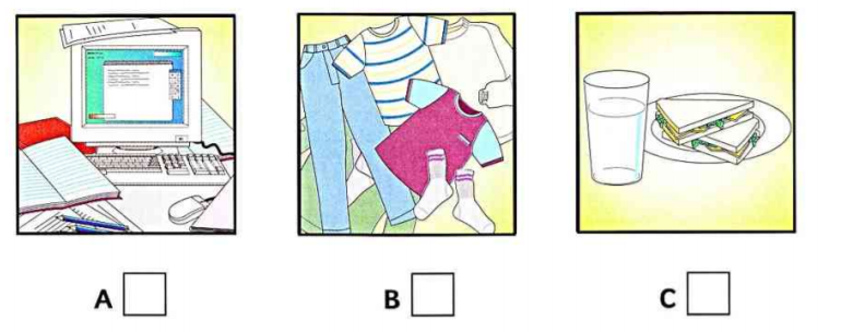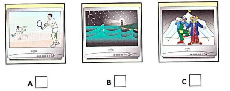 Listen and write a letter in each box. There is one example.