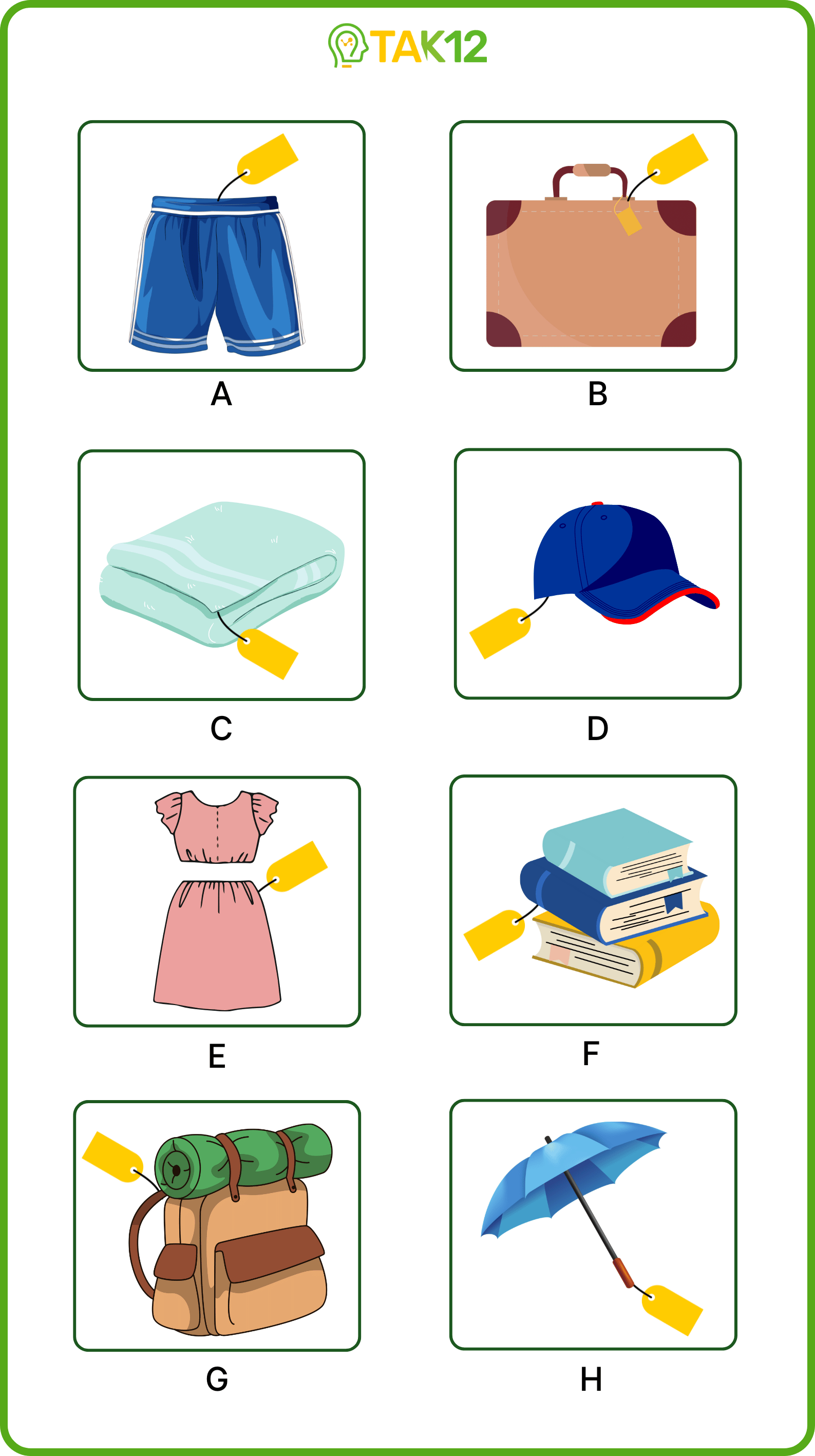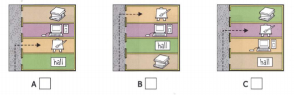 Listen and choose a letter in each box. There is one example.
