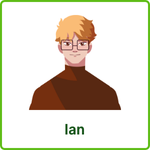 Example: Robert - the man in the jacket with stripes and wear a big hat.