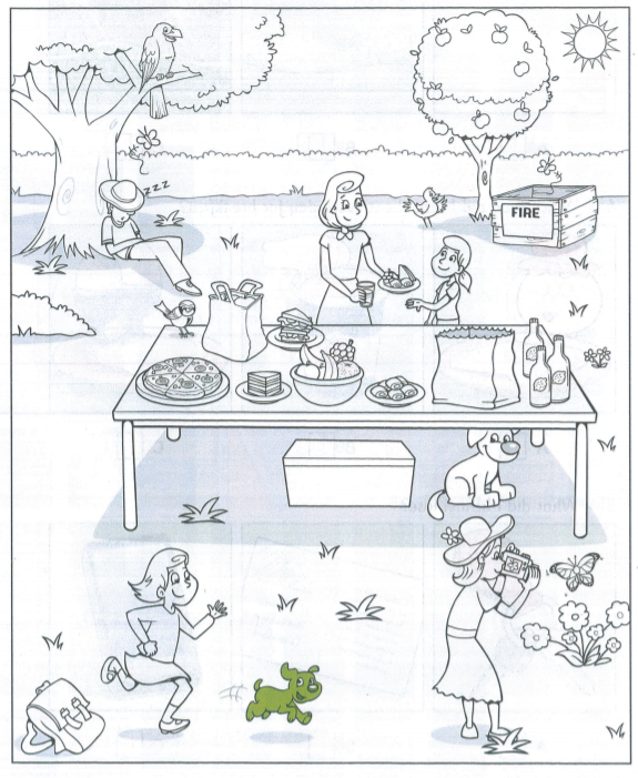 4. Colour the butterfly that the woman is taking a photo of, near the flower - .