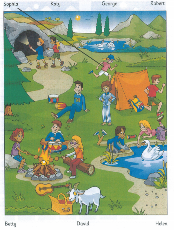 Example: Sophia - the girl is running, wearing the blue baseball cap.