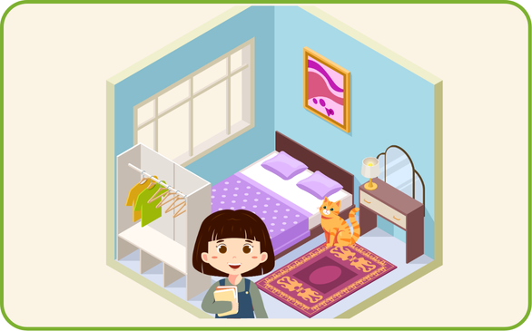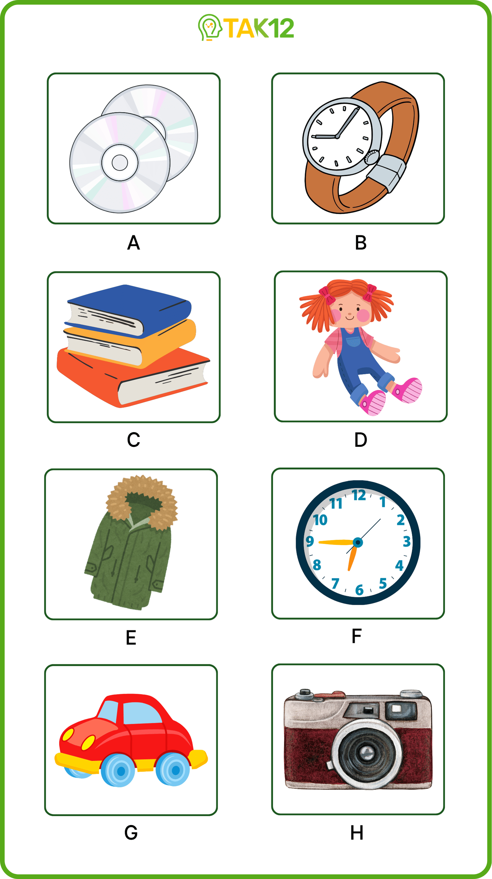 Listen and write a letter in each box. There is one example.