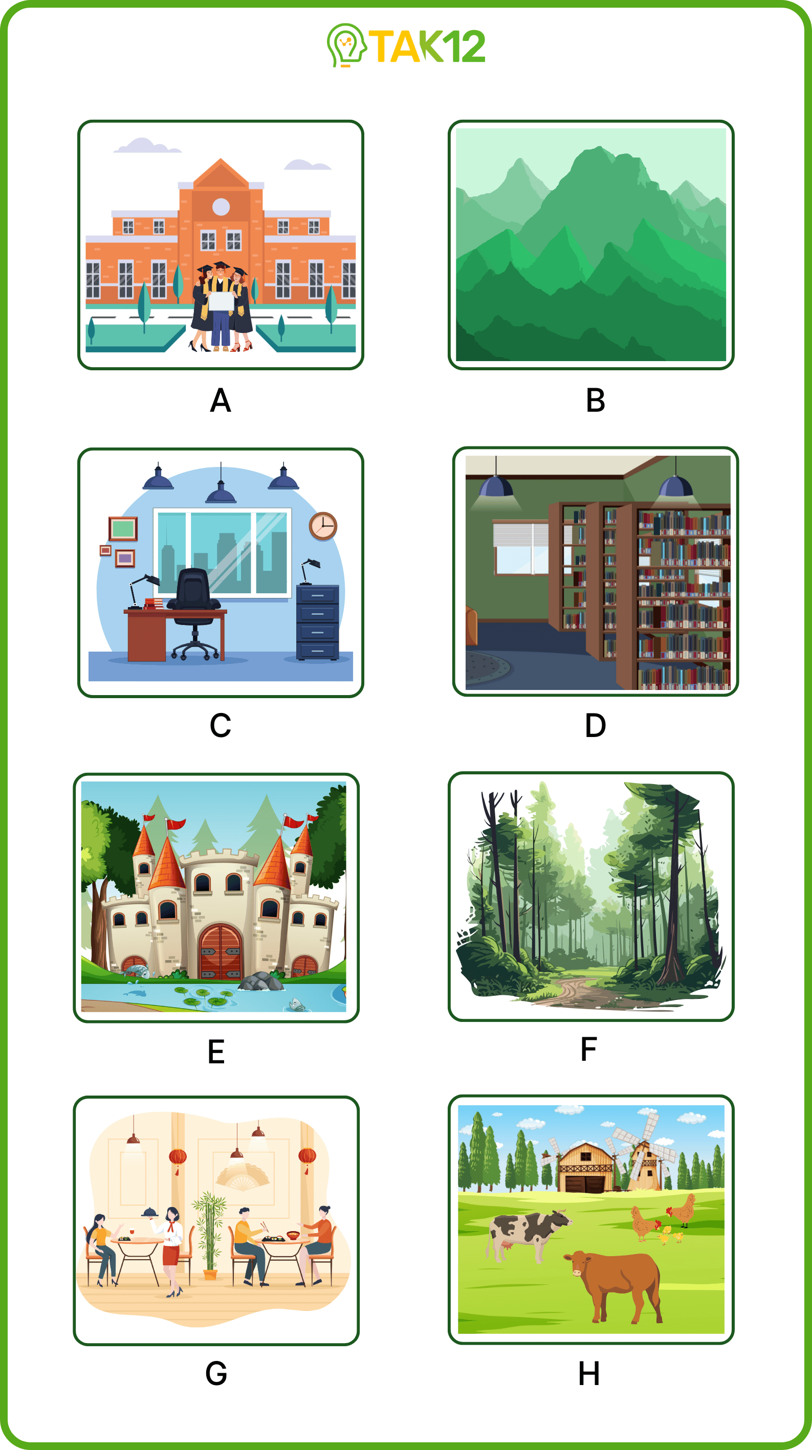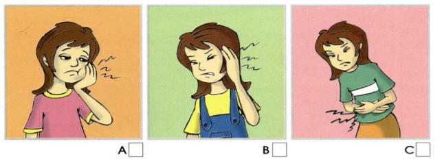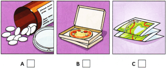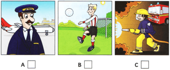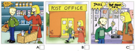 Listen and write a letter in each box. There is one example.