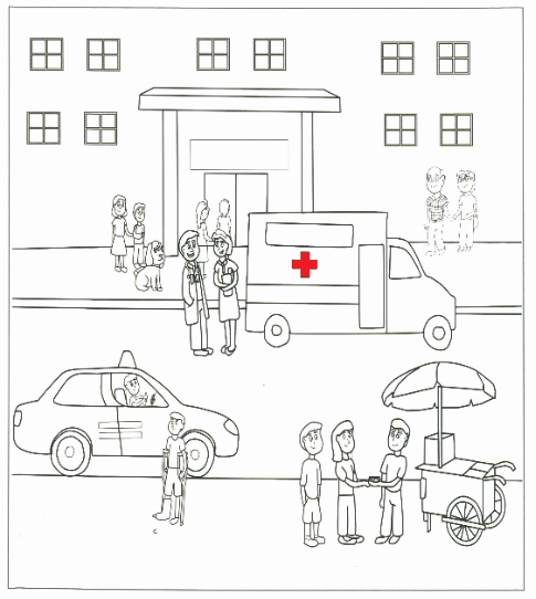 1. Color the hair of the nurse talking to the doctor - .